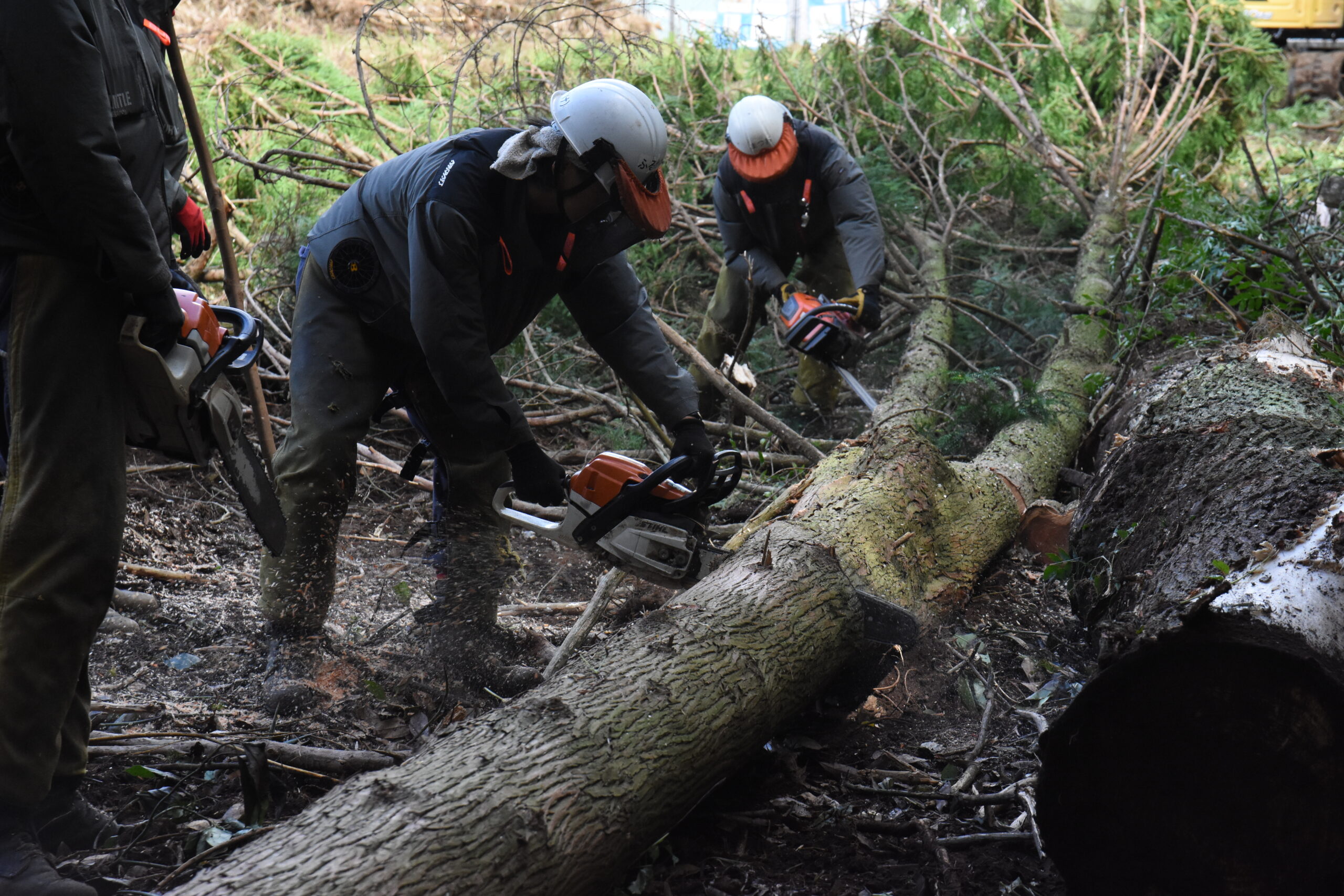 一般的な伐採、高所伐採、伐採前の調査など、現場ごとの作業風景を撮影。また、事務所撮影も行いました。現場では、倒木の様子など作業の全体像が分かる引きのカットから、道具・装備・手元の動きなどの寄りのカットまで撮影しました。あわせて、スタッフの働く姿も押さえ、仕事内容のイメージが湧くだけでなく、職場の空気感や働く人の雰囲気まで伝わるビジュアルを揃えました。